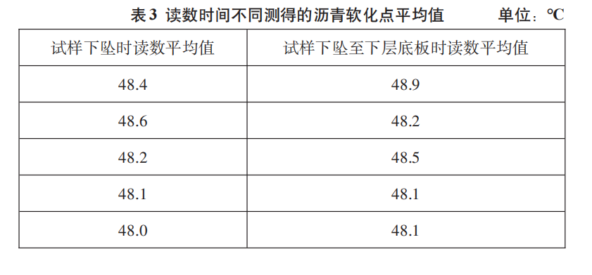 沒有同步升溫,會造成測出的結果軟化點偏高,讀數時間會對軟化點結果造成嚴重影響。在加熱過程中,應記錄每