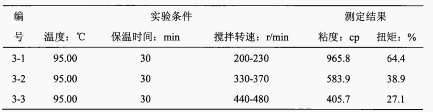 樣品溶液粘度的測定使用NDJ-5S旋轉(zhuǎn)粘度計(jì),預(yù)熱30min,選擇3轉(zhuǎn)子、80r/min的轉(zhuǎn)速測定淀粉溶液粘度2淀粉溶液加熱過程中攪拌器轉(zhuǎn)速對粘度的影響保持加熱溫度為95°C,保溫時(shí)間為30min,其他條件不變,改變加熱過程中電動(dòng)攪拌器的轉(zhuǎn)速,測定淀粉溶液粘度。本實(shí)驗(yàn)