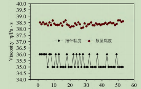 圖1數(shù)字式黏度計(jì)與指針式黏度計(jì)測(cè)試脫泡溶液黏度對(duì)比