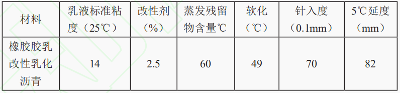 表1橡膠膠乳改性乳化瀝青質(zhì)量指標(biāo)